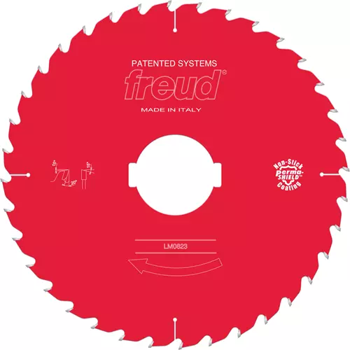 - Freud’s proprietary Perma-Shield™ non-stick coating reduces blade drag, protects the blade from corrosion and pitch build-up