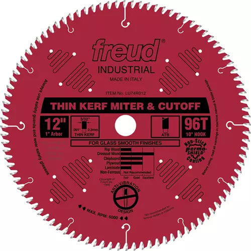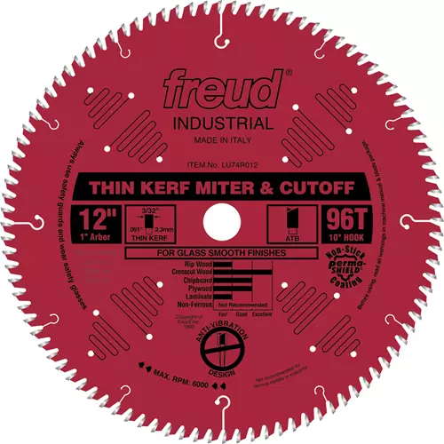 This thin kerf blade produces glass smooth surfaces when crosscutting hardwoods and softwoods, thanks to Freud's unique side grinding technology. The larger blades are ideal for miter box applications. Thin kerf blades remove less material than standard carbide blades, thus requiring less horsepower to produce equally good results.