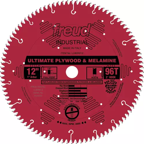 The LU80 saw blade provides flawless, chipfree edges in veneered plywoods, fine moldings, melamine, laminates, and crosscuts in solid woods. Using advanced technology, Freud developed this line of saw blades that features laser-cut, anti-vibration slots that practically eliminate the vibrations that resonate in standard blades. The combination of High ATB tooth design and anti-vibration slots makes these blades the ultimate finish blades. The result is a cut so smooth it eliminates the need for stabilizer or a scoring blade!