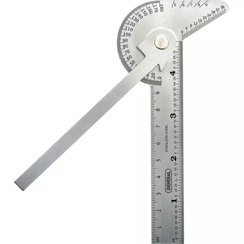 This indispensable pocket tool performs six separate functions: drill point gauge, bevel protractor, circle center finder, circle divider, tap and drill table and 4" rule with etched graduations in 64ths and millimeters.