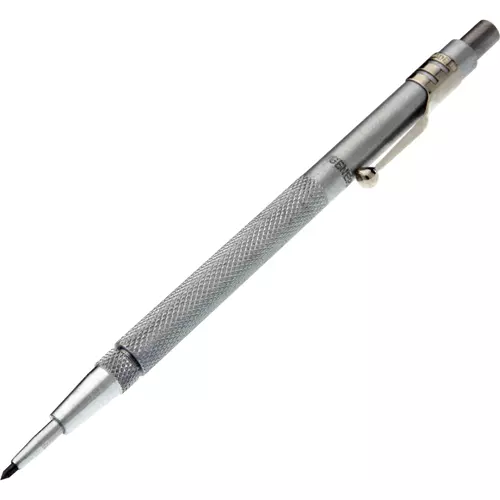 Tungsten carbide tip marks hard materials including hardened steel, ceramics and glass. Aluminum/nickel/cobalt alloy permanent magnet picks up small parts and retrieves steel chips from hard-to-reach places. Scriber point reverses for safety. Point is replaceable. Overall length is 6".