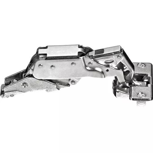 Full overlay 5/8" to 13/16". This wide opening, self-closing hinge is 3-way adjustable without loosening the hinge.