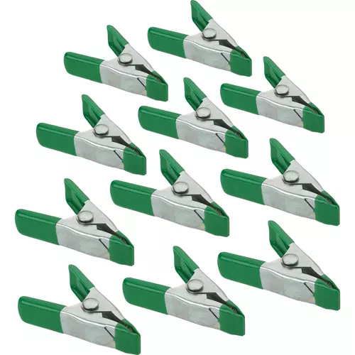 Provides instant holding power and is easy to reposition when assembling, fastening, or gluing small parts and thin metal, plastic, and wood pieces. Tiny size is ideal for craft work and model making or temporarily securing light sheet materials, fabric, and photography backdrops. Strong and lightweight all-steel construction is nickel plated to resist corrosion. Soft nonslip jaw pads grip and hold without damaging finished surfaces. 1/2" jaw opening, 1/2" throat depth.