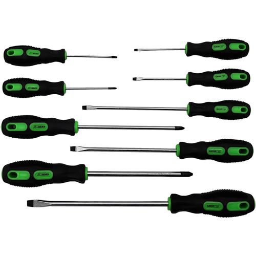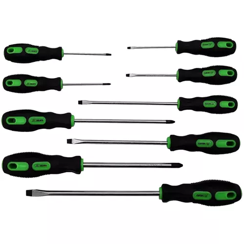 Drop forged, heat treated, CRV steel bladesNon-slip rubber grips provide a secure hold during use Includes: phillips (#0 x 3", #1 x 3", #2 x 6", #3 x 6"), flat (1/8 x 3", 5/32" x 3", 3/16" x 6", 1/4" x 6", 5/16" x 8")