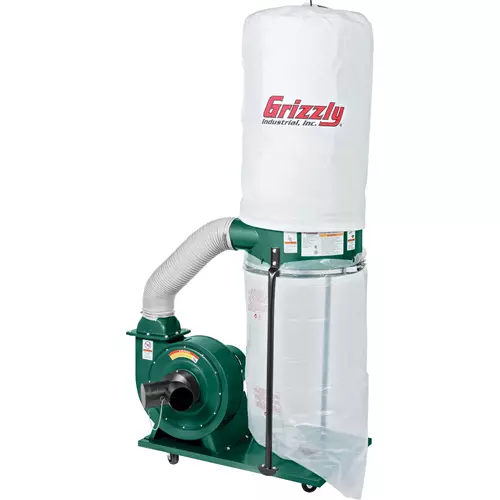 The G1028Z2 features a 2.5-micron upper filter top bag to capture the fine dust particles that normally end up all over your shop.