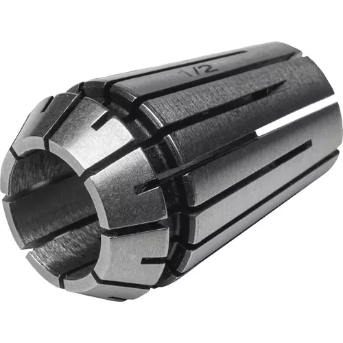 The 1/2" ER20 Spring Collet squeezes against the tool or workpiece to be held, forming a collar that locks it in place.