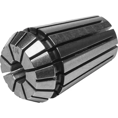 The 1/4" ER20 Spring Collet squeezes against the tool or workpiece to be held, forming a collar that locks it in place.