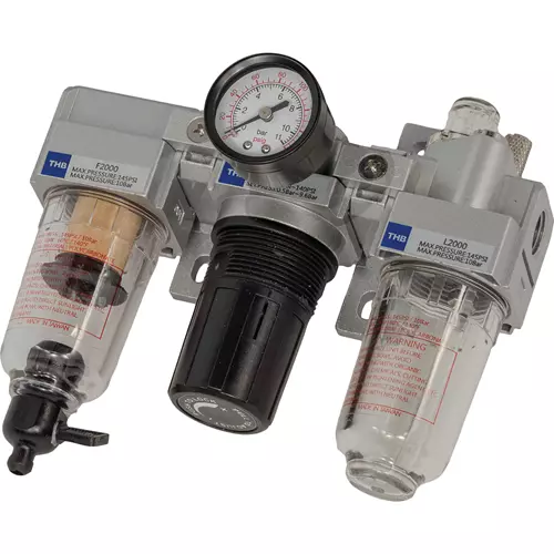 This device combines filtration, regulation, and lubrication in one unit, providing comprehensive air treatment to improve tool performance and durability.The filtration component removes air contaminants, protecting your compressor, air lines, and pneumatic tools from damage, while helping to ensure optimal performance.