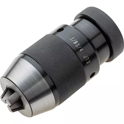 This precision milled, Large Keyless Chuck with a large diameter knurled body provides plenty of hand torque for tightening and if that's not enough, three 5/16" diameter holes are provided for use with a spanner wrench (not included). Overall size is 2-3/4" diameter x 5" long.