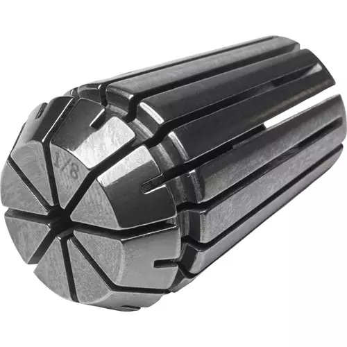 The 1/8" ER20 Spring Collet squeezes against the tool or workpiece to be held, forming a collar that locks it in place.