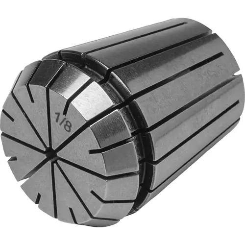 The 1/8" ER32 Spring Collet squeezes against the tool or workpiece to be held, forming a collar that locks it in place.