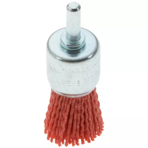 This 1" crimped, nylon abrasive cup brush is imbedded with abrasive, not to mention small and flexible enough to get in to those tough to reach places. An excellent choice for removing rust, corrosion, paint, and weld scale with ease. Course grit, 1/4" shank.
