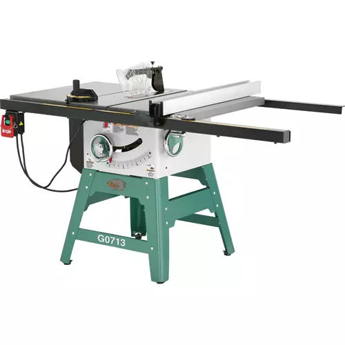 You may be wondering how we can offer a Contractor Style Table Saw with a riving knife that moves up & down with the blade? Well, we combined the lightweight open contractor style stand with a vertically aligned motor & blade raising & tilting mechanism that's supported by heavy cast iron table mounted trunnions. No more cantilevered motor mounts & stationary riving knives. You also get the benefit of very efficient dust collection since the hood moves with the blade mechanism. With all these great features, you'll love this table saw. CSA certified meeting CSA C22.2 #71.2-08 and UL 987 standards!