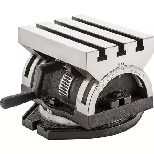 Super rigid for aggressive angled drilling, milling or cutting projects, the T2893310" Tilting-Swivel Milling Table can be set to work at any angle from -45° to +45°.