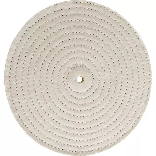 This buffing wheel is constructed using full disc layers of Sisal with outside cloth covers. This reduces buff debris and produces a softer and less aggressive buffing effect than the bias sisal buff mounted on steel center hubs. They are also quite economical to use since they may be worn all the way to the arbor hole. 10" diameter with a 1/2" arbor hole, 3/8" thick.