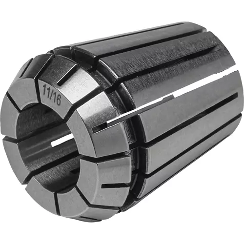 The 11/16" ER32 Spring Collet squeezes against the tool or workpiece to be held, forming a collar that locks it in place.