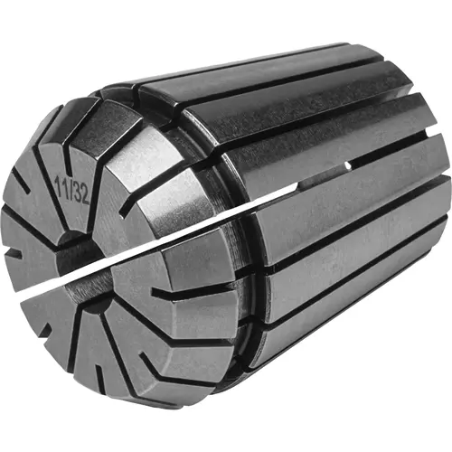 The 11/32" ER32 Spring Collet squeezes against the tool or workpiece to be held, forming a collar that locks it in place.