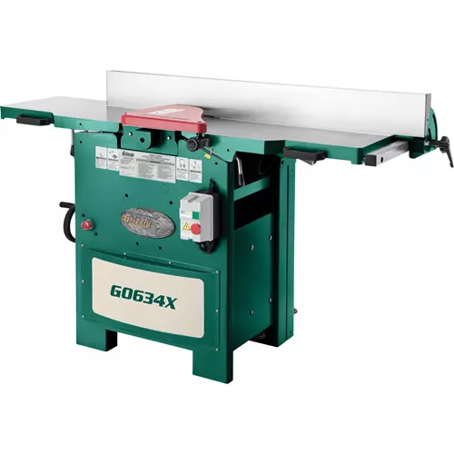 The G0634X 12" 5 HP Planer/Jointer combines a powerful 5 HP motor with a V-helical cutterhead for unmatched finish and long-lasting durability compared to a machine with straight knives.
