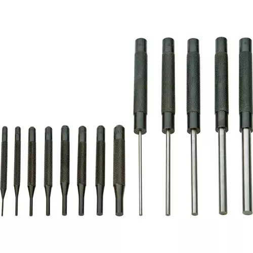 Drive pins? We got you covered with this 13-piece set. Comes with 5-8" long punches sized 1/8", 3/16", 1/4", 5/16" and 3/8" end diameters and 8-4" long punches sized 1/16", 3/32", 1/8", 5/32", 3/16", 7/32", 1/4" and 5/16" end diameters. All have knurled handles and come in a fitted pouch.