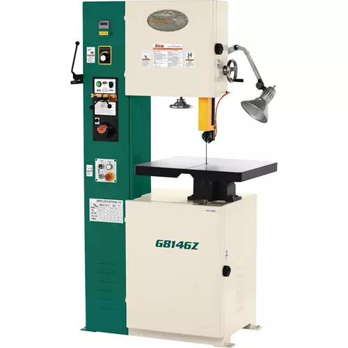 The versatile G8146Z 15-3/4" 2 HP VS Vertical Metal-Cutting Bandsaw is feature-packed with variable-speed control, rack-and-pinion guard, built-in light, with the ability to cut, weld, and grind your own blades.