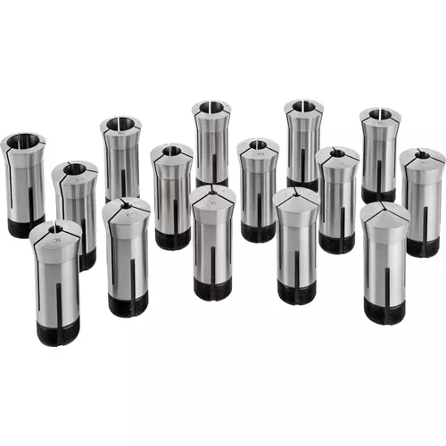 Grizzly’s 5-C Collets are fit for any lathe or mill with a 5-C spindle taper. This complete 15 pc. set includes: 1/8" thru 1" in 1/16" increments. Made from high grade collet steel and precision ground to exacting tolerances.
