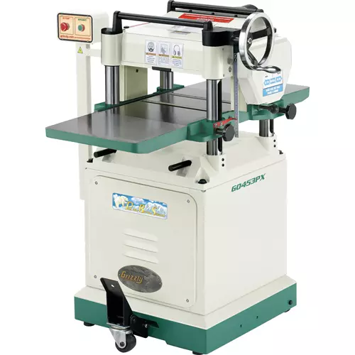 Enjoy the stability and power of a heavy-duty stationary planer with the versatility of shop mobility in one precision 15" Planer. Simply press down on the foot pedal to raise the planer on its wheels for positioning just about anywhere, or push the lever up to lower the planer down for rock solid stability. A 42-1/8" long bed with cast iron wings and bed rollers provide all the support needed for perfectly planed lumber. Heavy-duty construction and materials will have you planing all day long. Check out all the other specifications and design features and roll one of these planers into your shop!