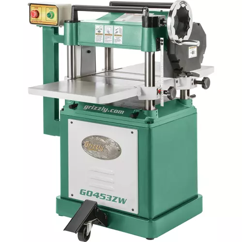 We've taken the best all around 15" planer and added a 4-row spiral cutterhead with German indexable carbide inserts for the finest surface finishes money can buy. Just like the model G0453W, you'll also appreciate the built-in mobile base, adjustable bed rollers, two-speed automatic board feed, and solid cast iron extension wings. We've also upgraded the magnetic switch control to a solid pedestal-mounted switch arm. If you're looking for a great all around 15" planer, this is the one to own!