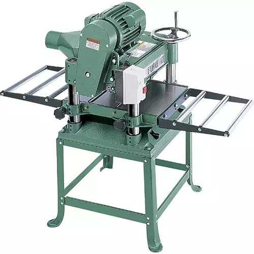 - Automatic infeed and outfeed rollers are chain driven and feed the work evenly for a smooth finish. Anti-kickback fingers prevent the board from backing up