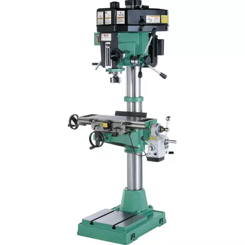 This is an excellent buy in a heavy-duty Drill Press. Equipped with a cross sliding table and power feed, this machine is robust enough for milling, drilling and boring. And the head is adjustable on the column! This feature expands the capacity of this machine. You can also change speeds quickly and easily. Equipped with a drawbar for threaded end-mill tooling.