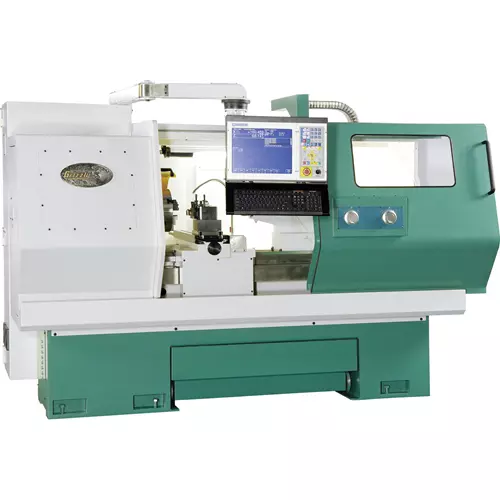 This is the CNC lathe you’ve been looking for! It’s got power, capacity, mass and the best controller on the market. Our new CNC lathe comes with a variable-speed 10 HP motor hooked up to a 3 speed gear box. The gear changes are M-code controlled - it’s all done on the fly! You get 17" of swing supported by a D1-8 spindle, mounted in 3 bearings, providing smooth, accurate turning. Coupled with a 13" wide bed made of high quality cast iron, this 6050 lb. machine can handle the toughest jobs and it’s no slouch with 236 IPM (inches per minute) X rapids and 314 IPM Z rapids. Our success with Centroid controllers on our milling machines made it an obvious choice for this lathe. The Centroid T400 has robust electronics, user friendly interface and is installed and tested by Centroid technicians, right at the factory. Actually, this machine is tested at the factory by three sets of engineers, the factory's, Grizzly engineers and Centroid. Among its best features is its easy-to-use conversational programming with “teach” mode, powerful graphing feature that allows you to see tool paths before running a job, stop/start during a job to make changes to part diameter or compensate for tool wear and in process speed/feed rate override. As with Centroid's mill controller, you can upload g-code from your CAD/CAM programs using USB or the RS-232 port.