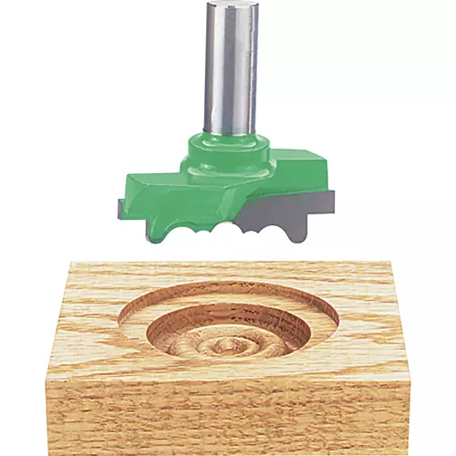 Milled from a solid steel blank, this carbide-tipped, 1/2" shank rosette cutter makes crisp rosettes in most hardwoods and softwoods. Please note, although this cutter looks like an oversized router bit, it is too big for normal router speeds and are designed for use with your variable-speed drill press or lathe. Max RPM: 15,000.