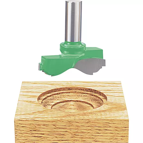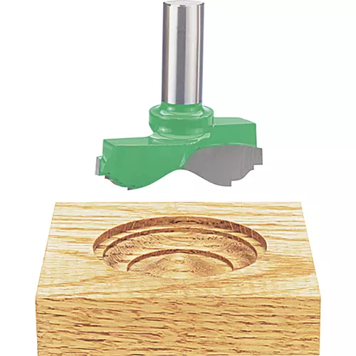 Milled from a solid steel blank, this carbide-tipped, 1/2" shank rosette cutter makes crisp rosettes in most hardwoods and softwoods. Please note, although this cutter looks like an oversized router bit, it is too big for normal router speeds and are designed for use with your variable-speed drill press or lathe. Max RPM: 15,000.