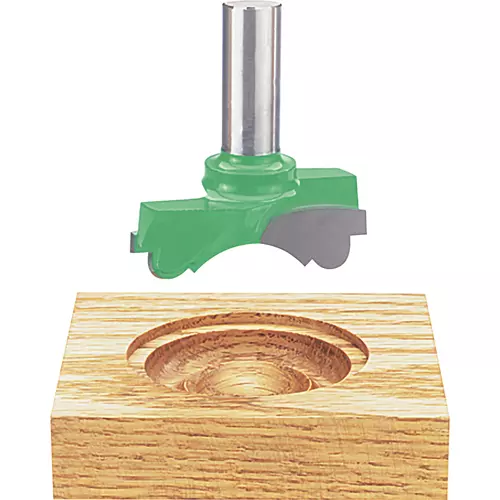 Milled from a solid steel blank, this carbide-tipped, 1/2" shank rosette cutter makes crisp rosettes in most hardwoods and softwoods. Please note, although this cutter looks like an oversized router bit, it is too big for normal router speeds and are designed for use with your variable-speed drill press or lathe. Max RPM: 15,000.