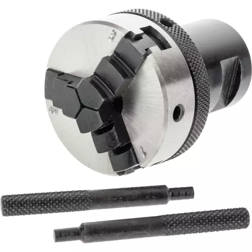 This 3-Jaw Micro Chuck is only 2" in diameter and it's reversible too! Get all the benefits of a large lathe chuck in a size that fits smaller lathes. Self-centering.