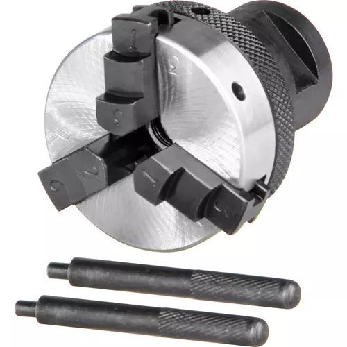 This 3-Jaw Micro Chuck is only 2" in diameter and it's reversible too! Get all the benefits of a large lathe chuck in a size that fits smaller lathes. Self-centering.