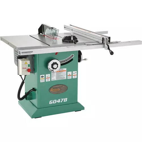 Finally! A cabinet saw at near contractor style table saw prices! We have taken all the heavy-duty features of our cabinet saws and mixed them with all the great features of our contractor style table saws and came up with a hybrid that has the mass, capacity and power you need for serious woodworking of all kinds. Supplied with the Shop Fox Aluma Classic Fence, our newest table saw has a 2 HP motor driving a 5/8" arbor with a V-belt. Add to that lots of cast iron and you can be assured of smooth, vibration free power for the cleanest cuts in the most challenging hardwoods. And with the unique cowling surrounding the blade and a totally enclosed cabinet, dust collection is a snap! We have a limited supply of stock that is CSA certified. Please call 1-800-523-4777 for more details, as these are available upon request only. Shipping exceptions may apply.