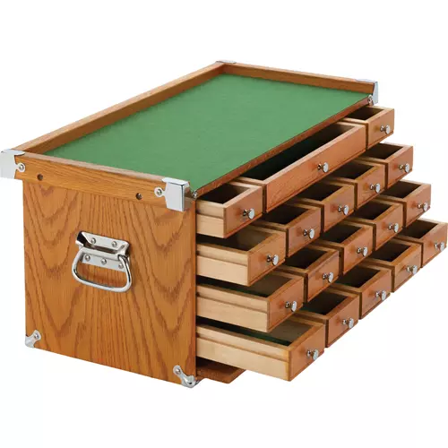 - 17 Small drawers: 3-1/8" W x 7-3/8" D x 1-1/4" H