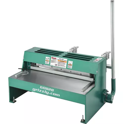 The Grizzly G0828 Benchtop Metal Shear will handle up to 18-gauge sheet metal at a maximum width of 25".It comes complete with two-sided upper and lower blades, adjustable gibs on the upper blade, a protractor stop plus front and rear adjustable stop scales.