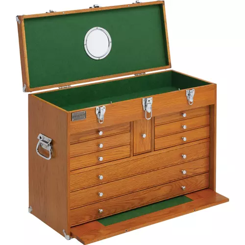 This red oak 10-drawer chest is a perfect choice for storing tools and special items you want to keep secure and separate.