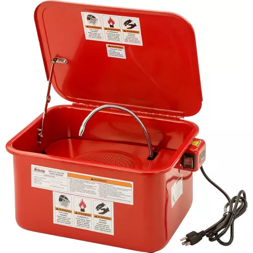 The G4012 3-1/2-Gallon Benchtop Parts Washer features a removable shelf, a sealed 0.7A pump motor and a flexible gooseneck spigot.