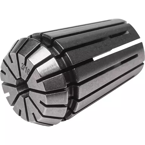 The 3/16" ER20 Spring Collet squeezes against the tool or workpiece to be held, forming a collar that locks it in place.