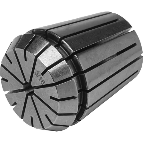 The 3/16" ER32 Spring Collet squeezes against the tool or workpiece to be held, forming a collar that locks it in place.