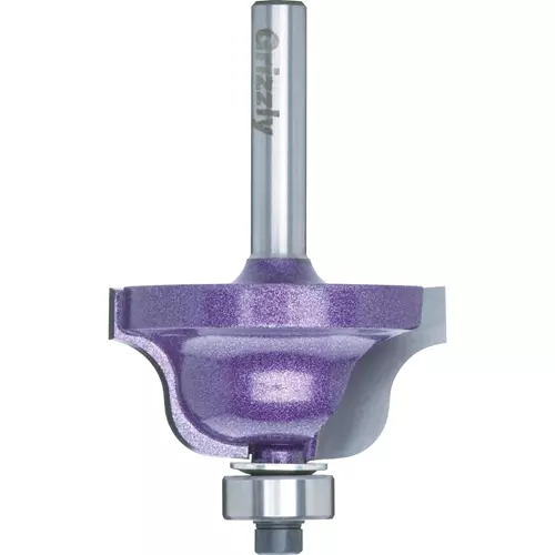 Sometimes you want the best money can buy; sometimes your project requires you to use the best router bits made. If so, this router bit fits the bill! Starting with a better quality steel for the bodies (SAE4140), we heat treat it to the appropriate hardness & apply K10 micro grain carbide. We then precision grind the blades to 800 grit (using the wet grinding process) so that it is razor sharp and then finish it with a baked-on metallic paint. This router bit is made for us and to our exacting specifications in an ISO 9001 rated factory. The purple color used on our Super-Duty Router Bits is a registered trademark and is owned by Grizzly Industrial.Cutter Diameter: 1-1/2" Cutting Height: 3/4" Overall Length: 2-1/4" Radius: 1/4" Maximum RPM: 18,000