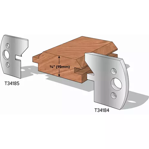 Note: Use with T34184 3/4" Paneling V-Grove Knives Male, 2-Pk. when creating V-groove moulding.