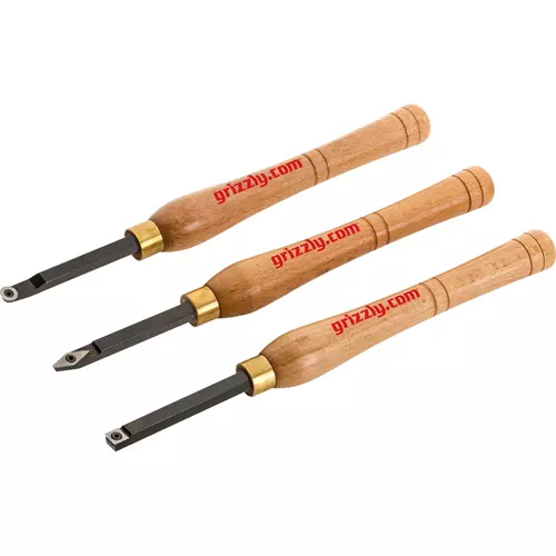 The T25974 3-Piece Carbide Chisel Set feature replaceable carbide inserts that can be rotated for fresh cutting edges.