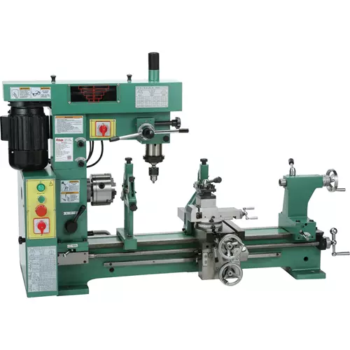 With great features like a magnetic controller and a forward/reverse switch, hardened and ground bedways, two motors for extra power, a built-in milling table with T-slots, and a 4-way turret tool post makes this a real do-it-all machine.