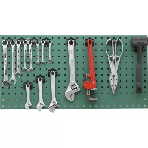 Mount this panel on the wall for 603 square inches of space! Tools and hooks not included.35" W x 17-1/4" H x 5/8" D