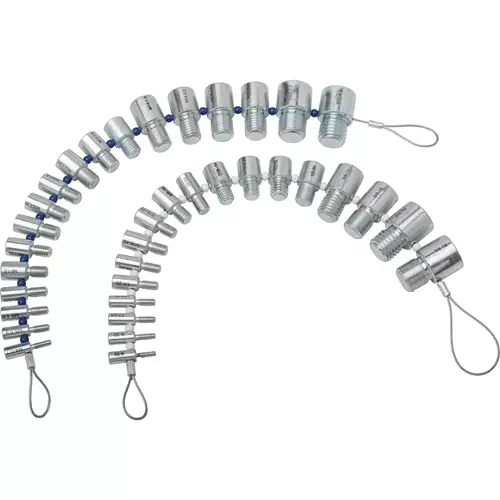 Each individual gauge features a male threaded stud on one end and a female threaded hole on the other.