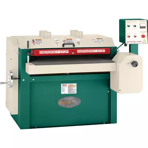 Also features four 4" dust ports to maximize dust collection, easy access to sanding drums, emergency stop for safety, solid steel construction, independent motor control, and massive power.