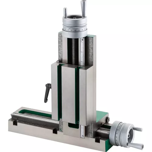 The T31765 4" 90° Horizontal/Vertical Slide Table can be used either vertically or horizontally, based on your needs, for milling operations.